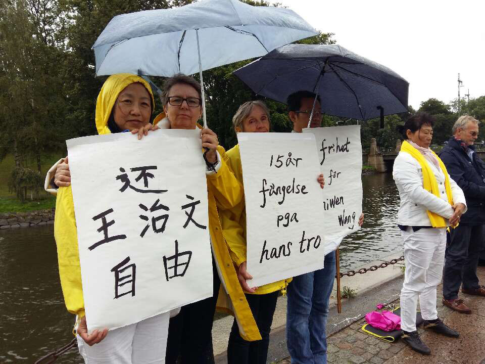 这次抗议活动结束前,瑞典的法轮功学员向中领馆递交了一封公开信,特别敦促中国政府立即还王治文自由。