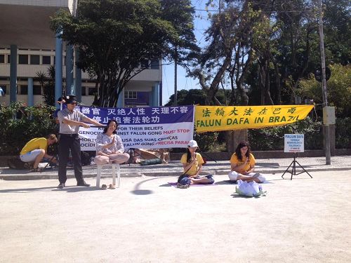【明慧网二零一六年八月十九日】二零一六年八月,巴西法轮功学员利用奥运会在里约热内卢召开的机会,举办多项活动,向世人展示法轮功的美好,并揭露中共迫害法轮功的真相。因比赛场馆附近的街道全部封闭,无法接近,法轮功学员选择在旅游景点开设真相点,展示功法、做酷刑展和发放英、葡、中文的真相资料。