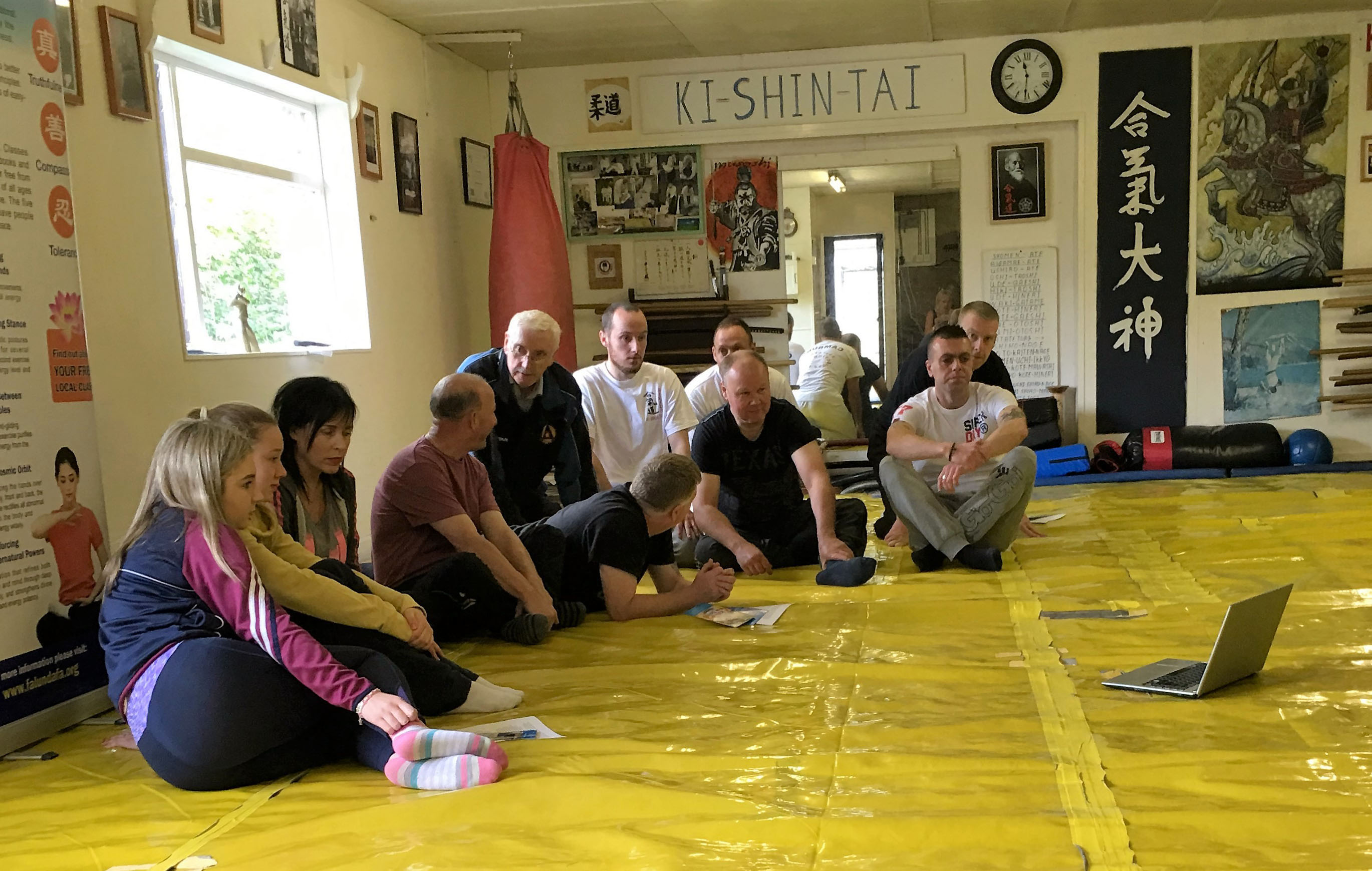 【明慧网二零一六年八月二日】二零一六年七月三十日,北爱尔兰法轮功学员来到北爱蒂龙郡武术学校(CAMBUDO MARTIAL ARTS SCHOOL)介绍法轮功。武术学校的校长和学生一起学炼法轮功,很多人在了解到中共活摘法轮功学员器官牟取暴利等恶行之后,纷纷签名支持制止迫害