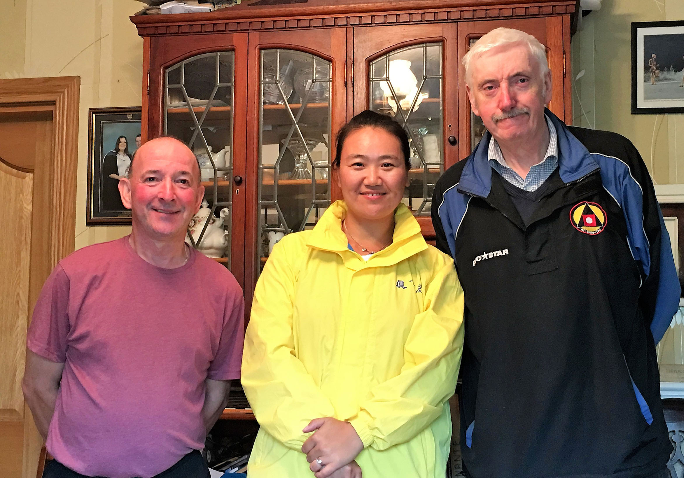 汤姆(右)、克里斯(左)与法轮功学员合影留念。