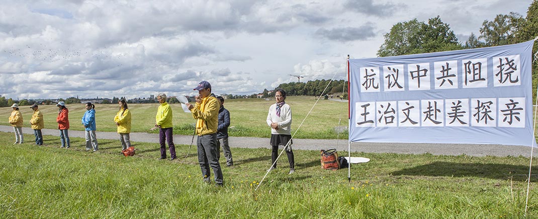【明慧网二零一六年八月二十日】继二零一六年八月十二日中午,瑞典哥德堡及周边地区的法轮功学员在哥德堡中领馆前的抗议活动,部份瑞典法轮功学员于二零一六年八月十九日下午,又在位于斯德歌尔摩的中使馆前举行活动,抗议中共阻挠王治文赴美与家人团聚,同时向中使馆内的官员及过往民众讲述中共栽赃陷害法轮功、迫害法轮功学员的事实真相。
