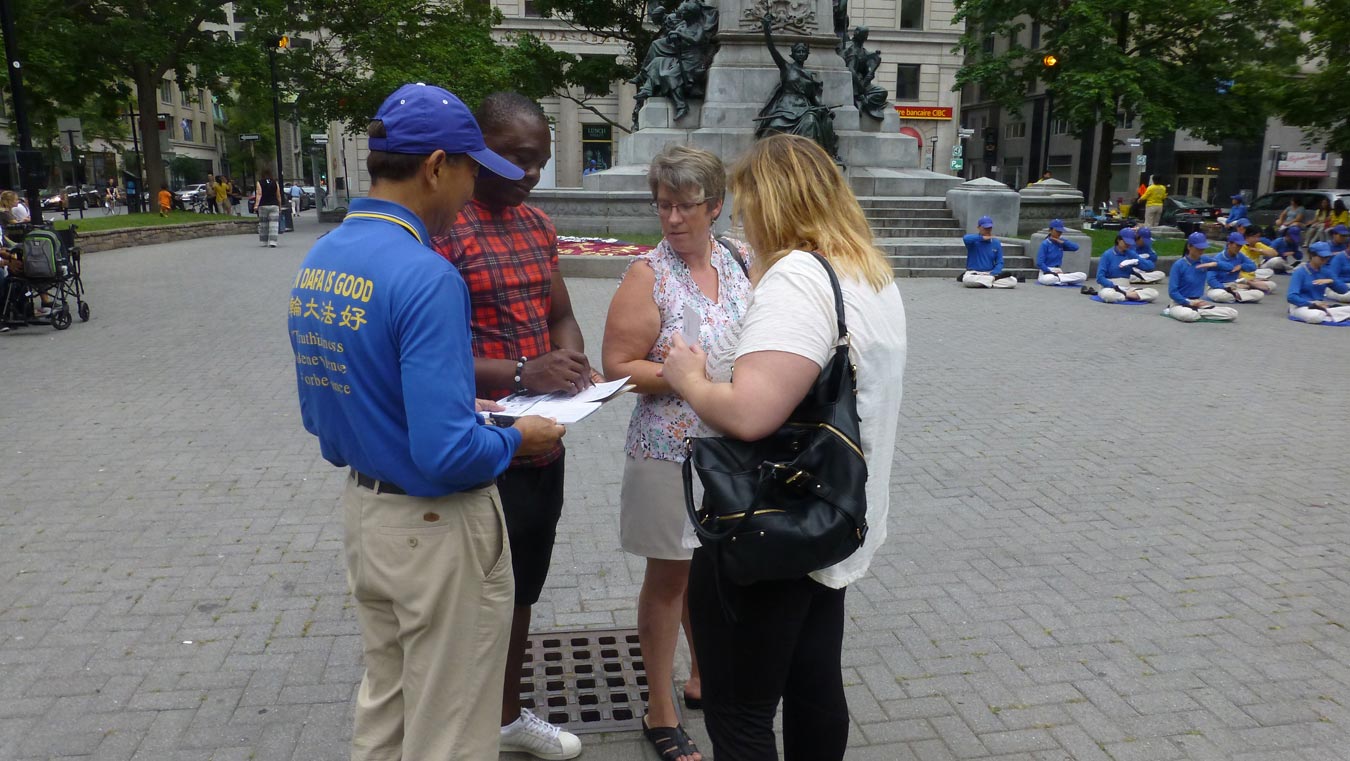 自今年八月以来,蒙特利尔法轮功学员在唐人街、Place des art广场、地铁站,以及老港等景点开展了各种形式的征签活动。