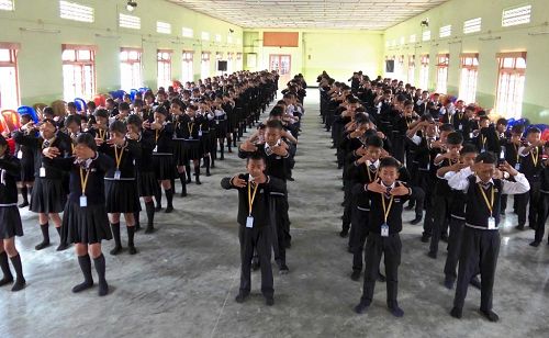 ![]() 图4:靠近缅甸附近的印度中学生在学炼法轮功 |