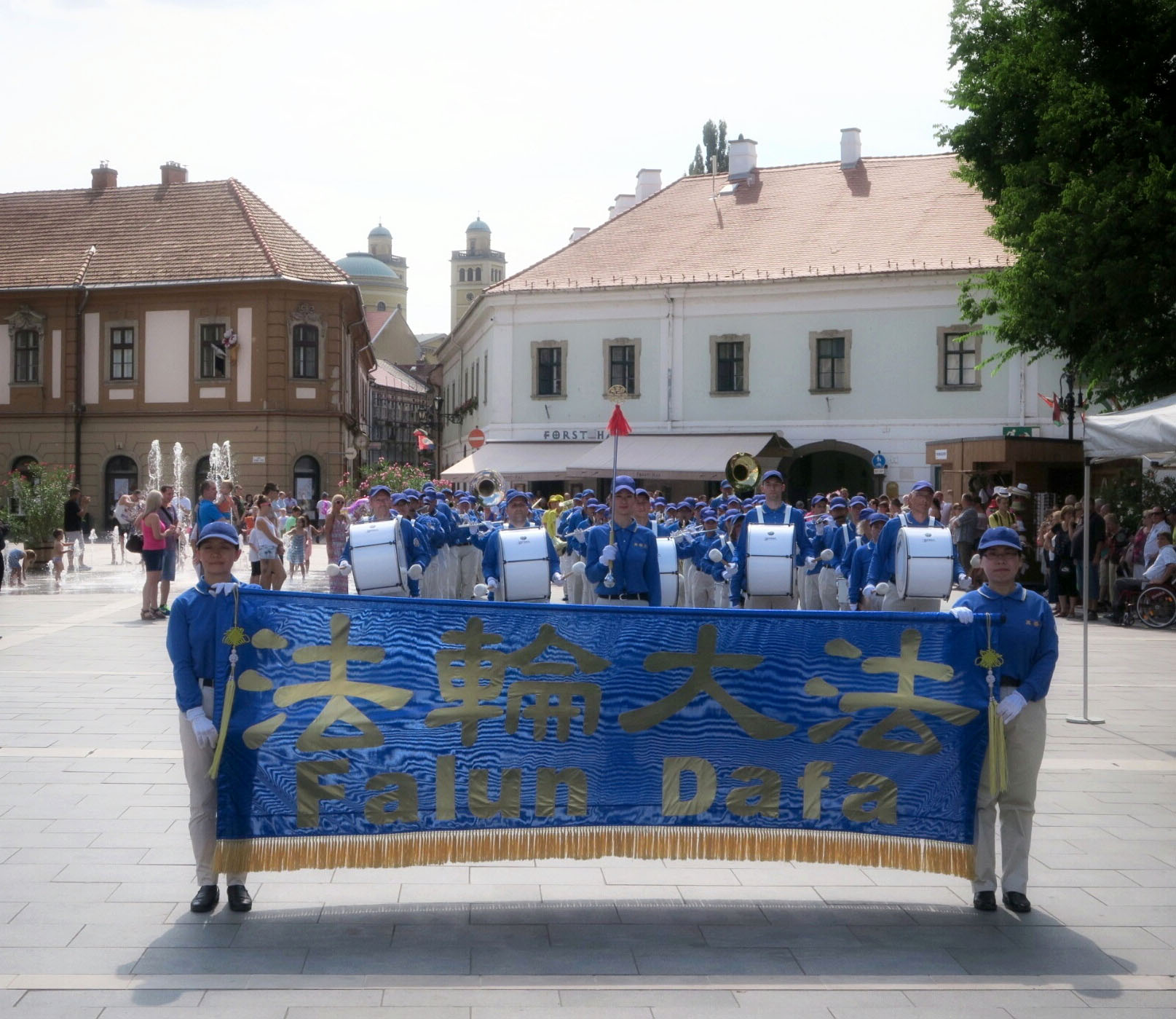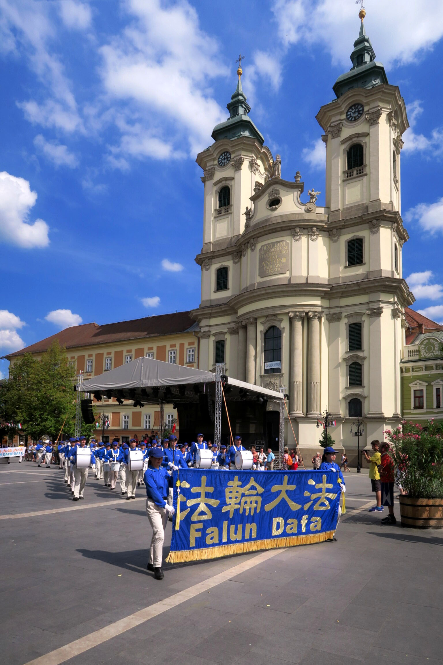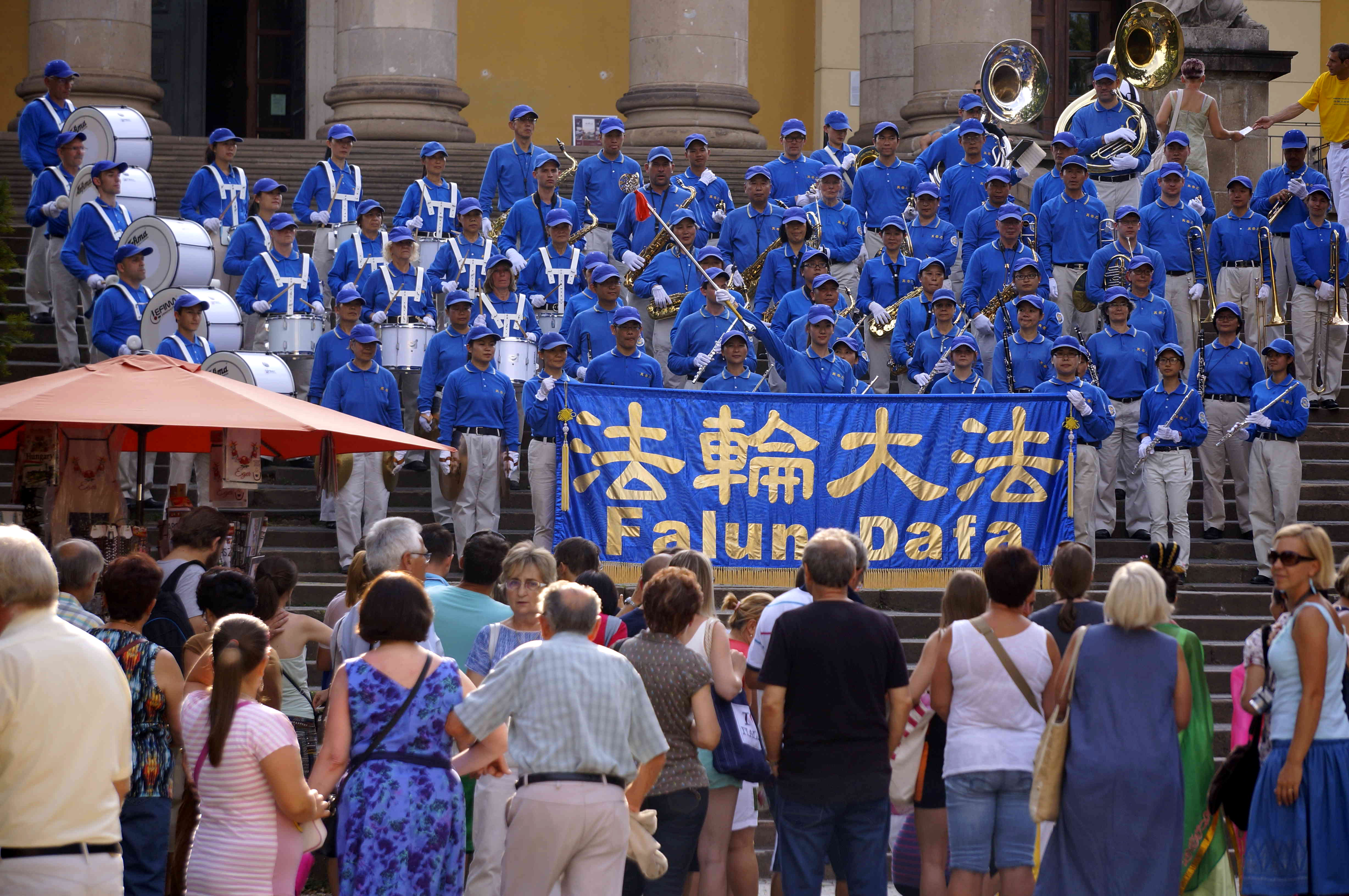 【明慧网二零一六年八月二十三日】二零一六年八月二十日,欧洲天国乐团受匈牙利北部埃格尔(Eger)市市长Laszlo Habis先生的邀请,参加当地的国庆活动。在市中心的演出让很多人第一次听说法轮功以及中共对法轮功的迫害。很多人赞叹天国乐团给人带来了正面的能量,音乐打动人心,让人感受到祥和与快乐。