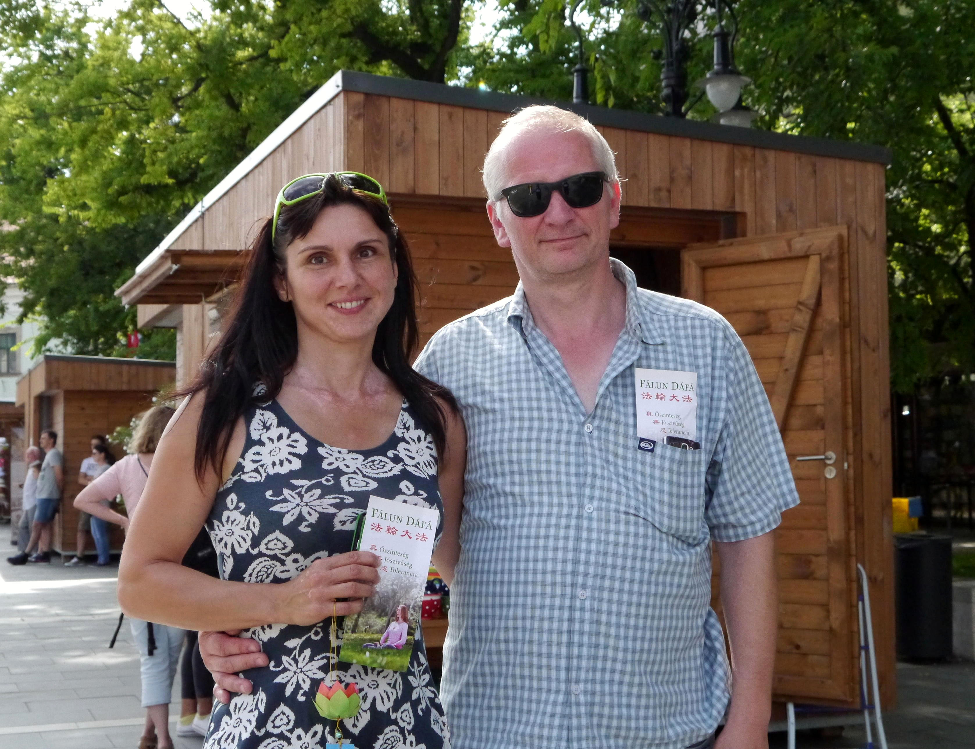 在网上看到了天国乐团演出讯息后,Takacs夫妇特意来看演出,他们还询问法轮功是什么。得知法轮功教人按照“真善忍”做个好人,修炼自己的心性后,Takacs先生认为法轮功非常美好,他感叹说:“如果人们都能有这样的态度,整个世界都会变得美好。”