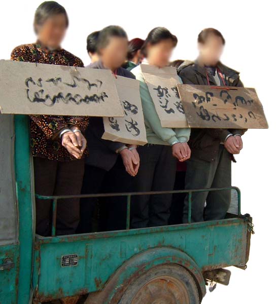 第一次是在二零零零年大年初一,我们在公园里炼功,被当时的公安局副局长等人绑架到公安局会议室,算上我儿子有五十四人,那时我儿子在上幼儿园。在会议室,有九个已“挂过名”的同修被用绳子把手捆在背后,游街示众后,关进看守所。余下的人一个个提审,逼问组织者是谁,一直审到晚上九点多,才把我们用警车拉到党校洗脑班。