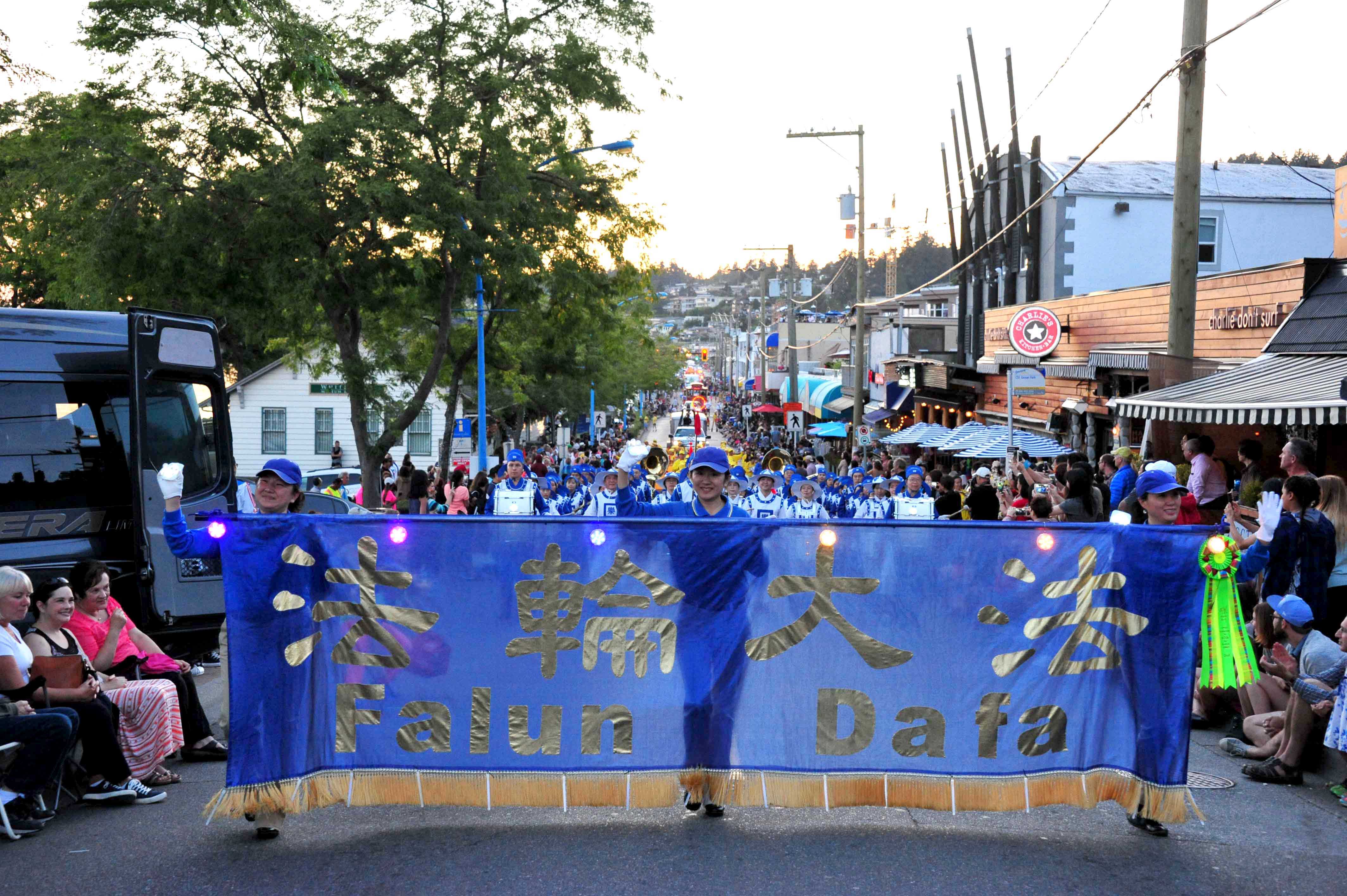 白石镇位于美加边界,是风景优美海边小镇。是传统的旅游度假地区,近年很多中国大陆移民陆续搬到这里居住。法轮功学员的游行队伍由天国乐团、腰鼓队和法轮功功法演示队组成,一路走来受到沿途观众热烈欢迎。特别是很多华人纷纷接受法轮功真相资料,很多人就在路边开始阅读。