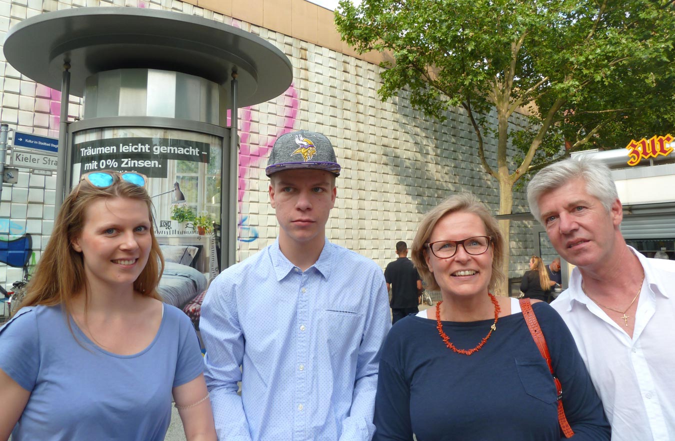 游行队伍过去后,有一家四口人仍在向队伍远去的方向张望。海尹女士(Annett Hein)还没有从震惊中恢复过来,她说:“第一眼看到游行时觉得让人愉悦,后来看到横幅上活摘器官的图片……”她睁大了眼睛,张大了嘴巴,作出万分惊讶的表情,海尹先生(Ulrich Hein)接过话茬说:“让人感到震惊。”