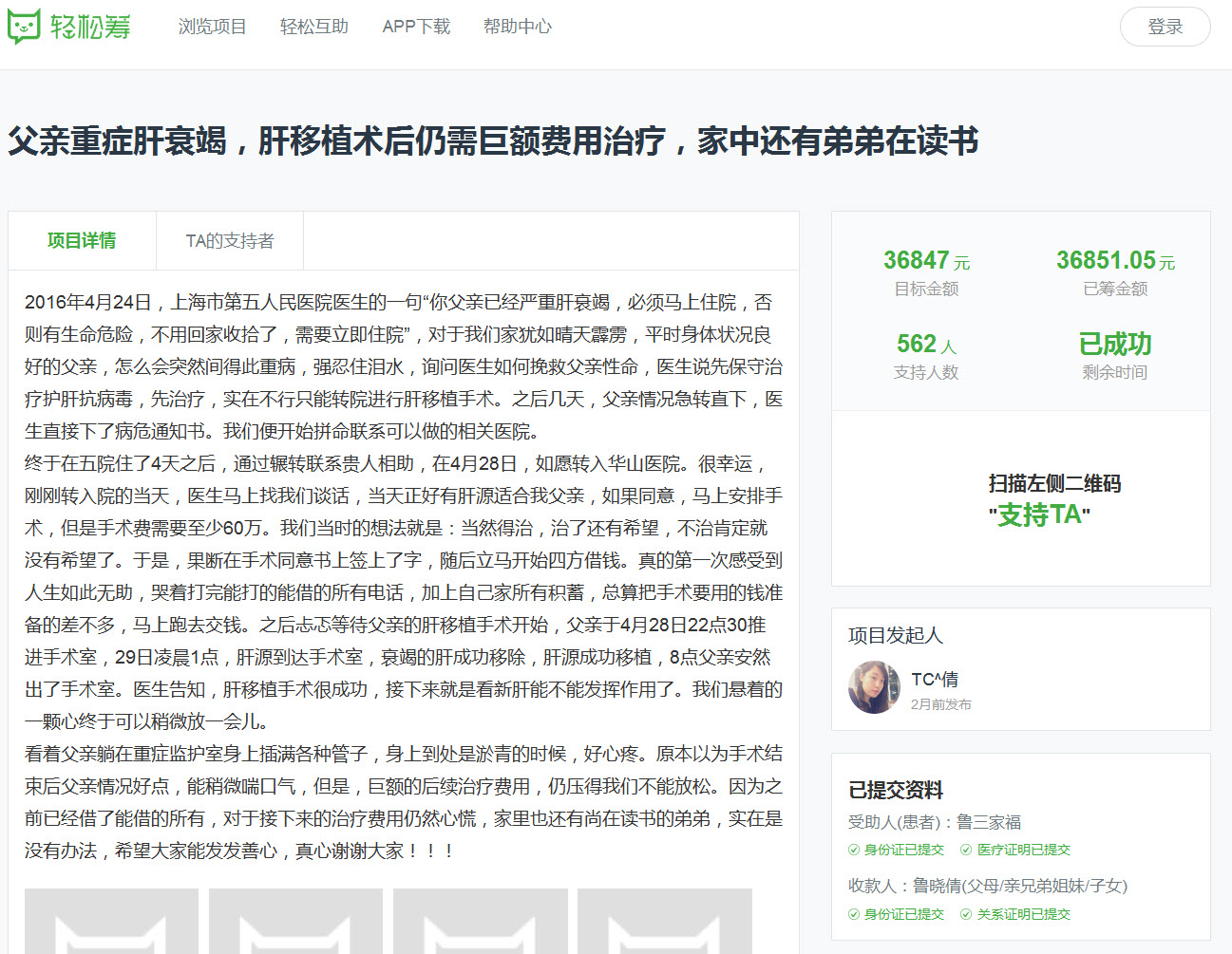 仅买肝一项就花了四十万元,手术当天共花了七十万元。