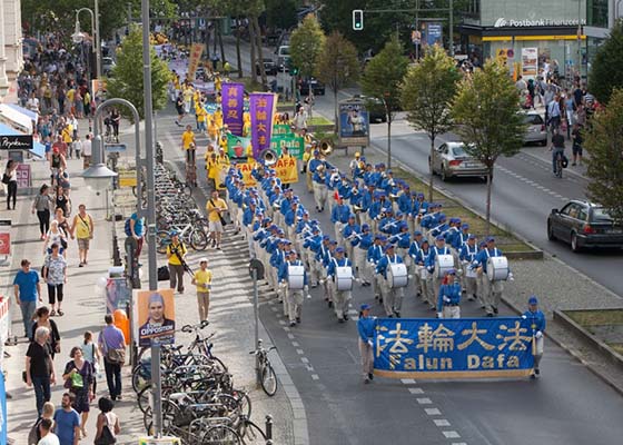 法轮功学员在柏林的大游行,不光吸引了众多德国民众的目光,同时也震撼了很多中国大陆民众。有的中国人拍照、录像,有位游客甚至高喊“法轮大法好!”