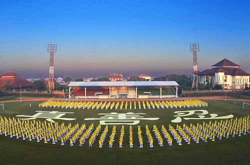 图3-4:亚洲法会前夕,法轮功学员排出“真善忍”三个大字