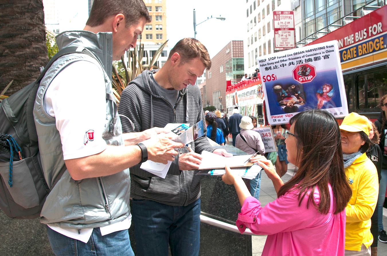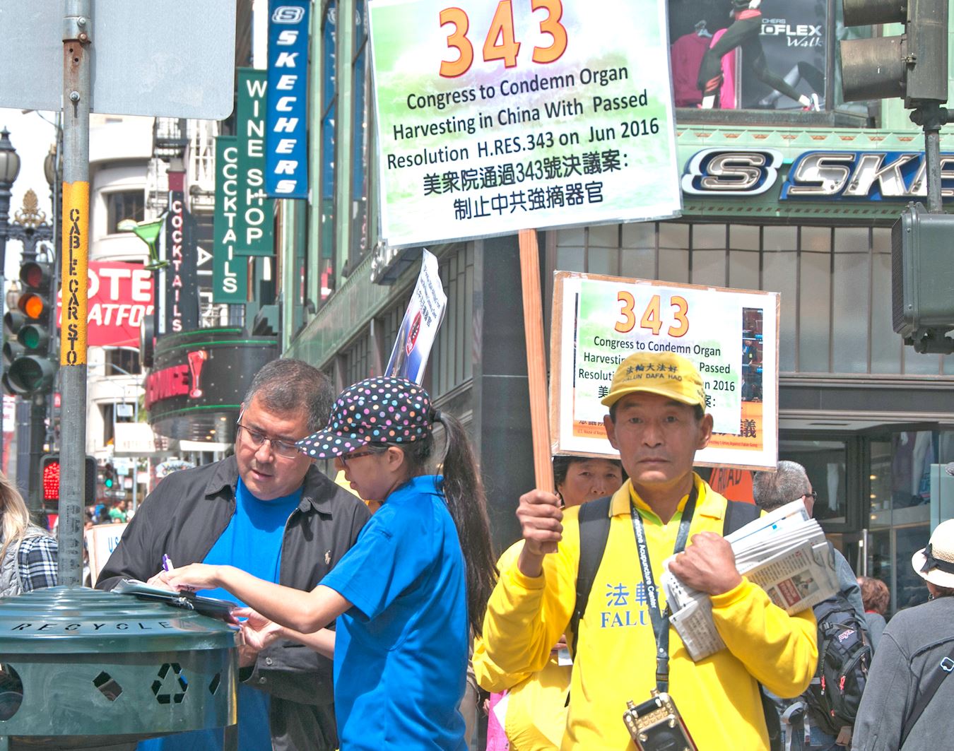 【明慧网二零一六年九月十二日】九月十一日,旧金山法轮功学员利用双休日走上街头,向民众征集签名,呼吁制止中共活体摘取法轮功学员器官的罪行,获得民众支持。