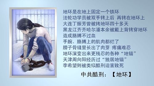 二零零二年中秋节——“恶徒将母亲双手抱铐在大树上,整整铐了一宿,致使她双手僵直拿不住东西,之后还被迫干活。”这是被迫害致死法轮功学员任金慧的儿子诉江材料中,披露的母亲生前所遭受的一种酷刑,他母亲还经历过铐死人床(如下图)、坐小凳、烈日下罚站、被毒打致昏、电棍电击……任金慧被迫害离世时已年近七旬。