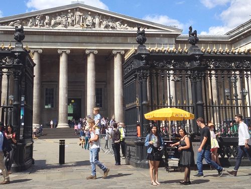 从二零一四年夏天开始,法轮功学员每周末到大英博物馆门前讲真相,越来越多中外游客在这里明白真相后签名支持法轮功学员反迫害。