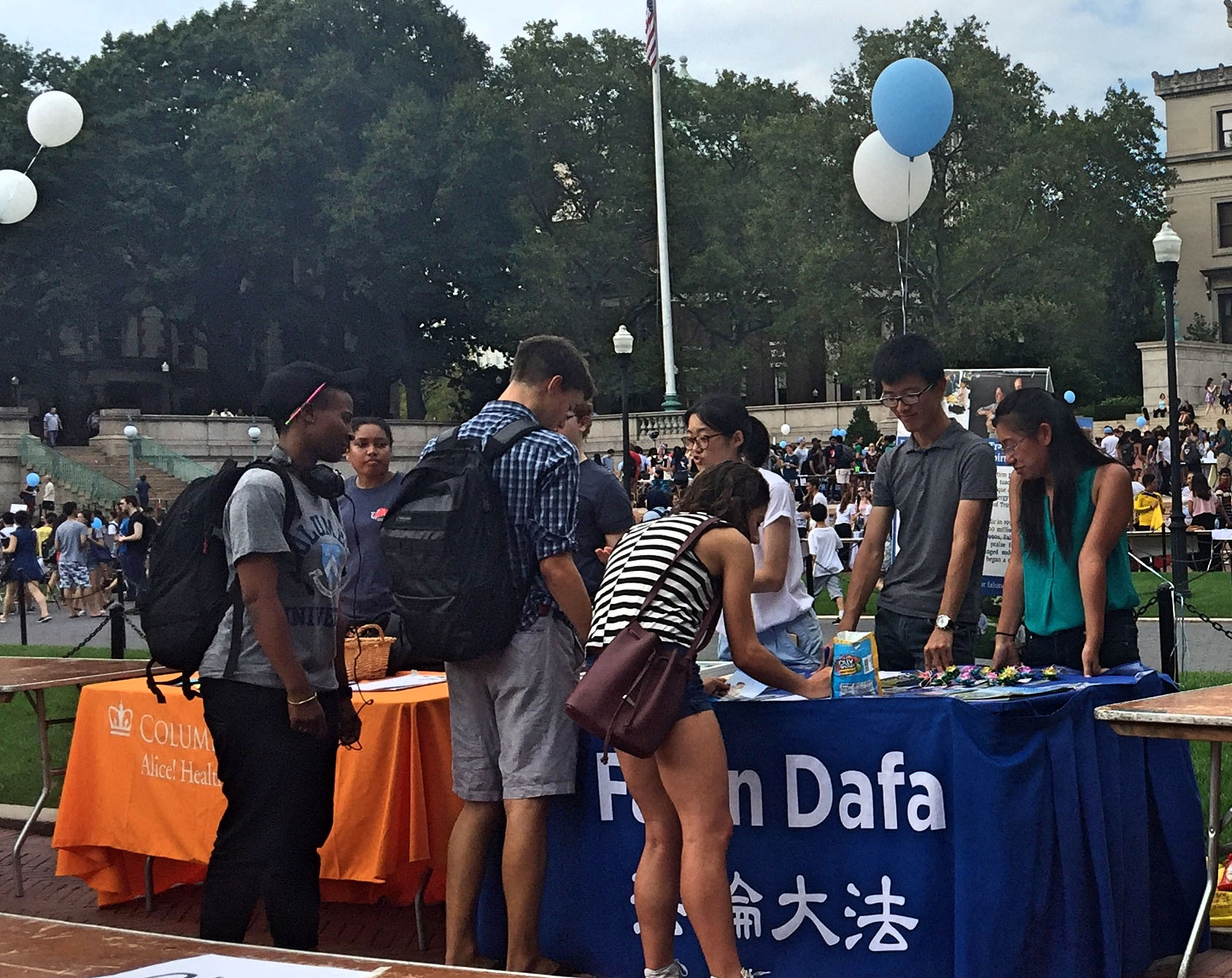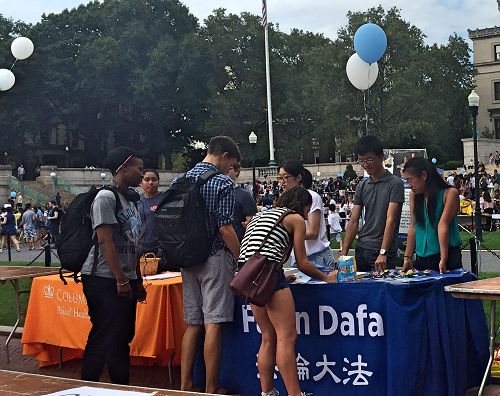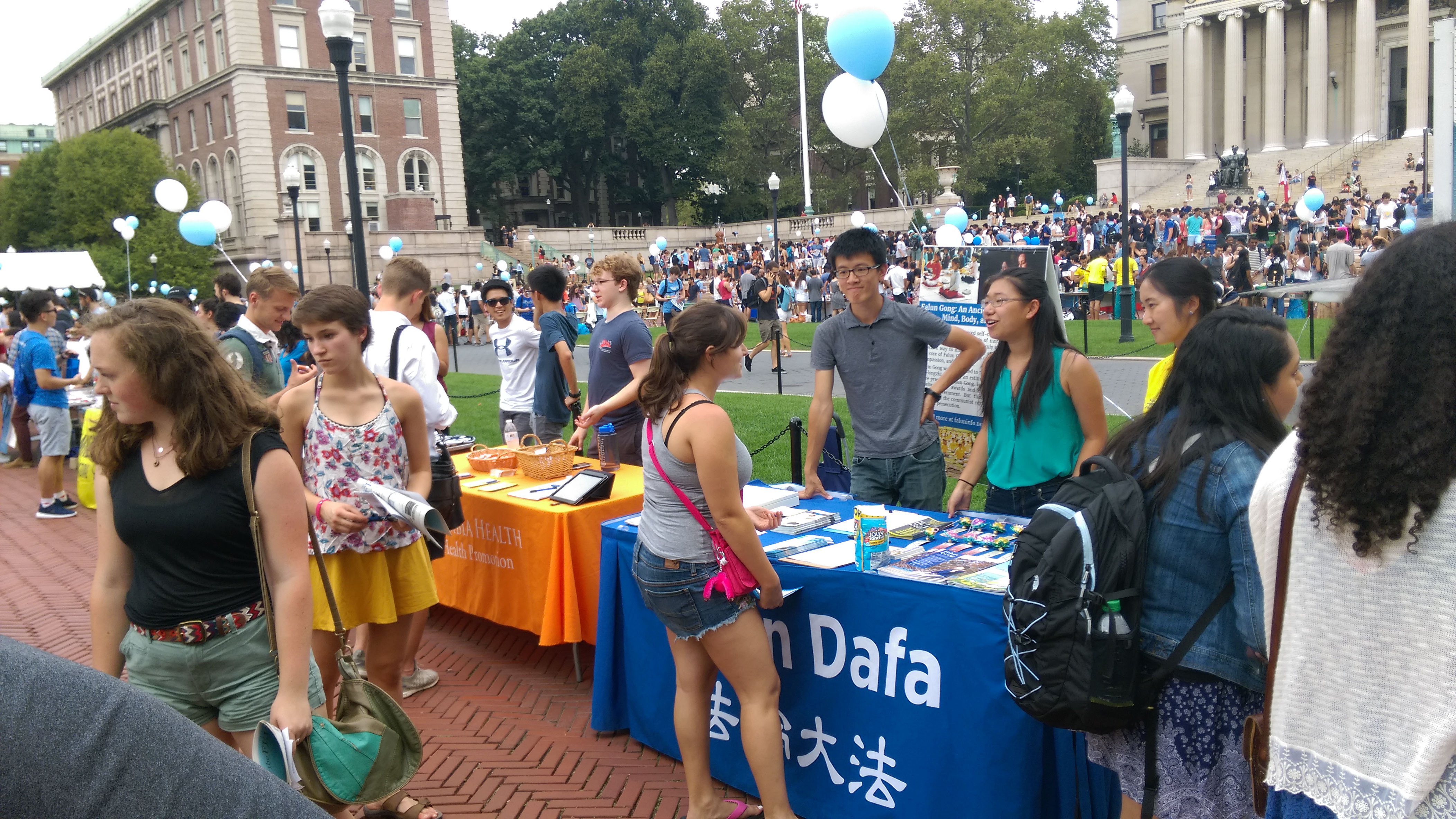 【明慧网二零一六年九月十六日】二零一六年九月九日,纽约哥伦比亚大学开学的第一周,校园里举办了一年一度的学生活动日,校园中心从Low Plaza广场到南边的Butler Library图书馆门前,整齐的排满的三百多个学生活动社团的展位,欢迎新生加入社团活动,丰富校园生活。