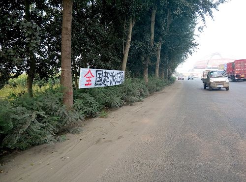 河北保定蠡县公路边庆祝中秋悬挂的大法真相条幅