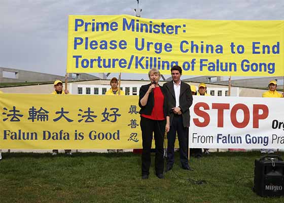 澳国会前集会 敦促总理访华关注法轮功(图)