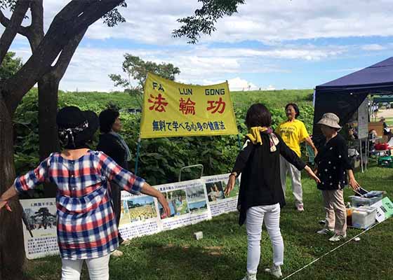 日本爱知县稻泽市的法轮功学员参加了在本市祖父江Sario公园举办的稻泽夏季活动节,并义务教功。