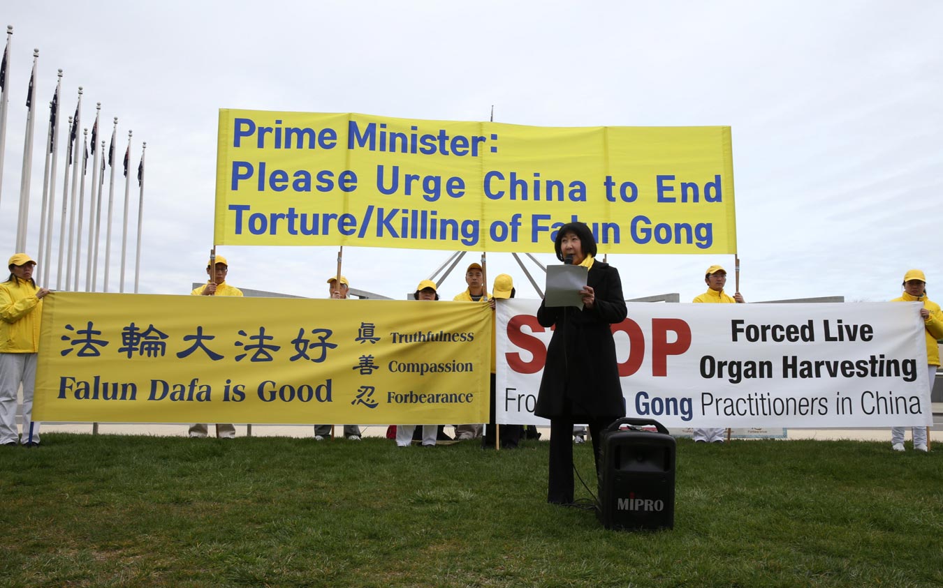 纽省法轮大法协会代表艾米·菲斯特(Emmy Pfister)女士在当天的集会上说:我们希望总理特恩布尔(Malcolm Turnbull)先生下周去中国参加G20峰会时,基于澳洲的尊重,理解和接受的价值观,提出人权问题。我们希望总理向中国政府提出立即停止对法轮功迫害,停止中共活摘器官的罪行,将迫害法轮功的元凶江泽民绳之以法。