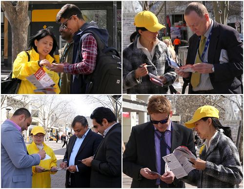 集会结束后,法轮功学员继续在堪培拉的商业中心向民众进行讲真相征签活动。一位姓布莱斯(Meagan Brice)的女士在听到对中国法轮功活体摘取器官的事后,非常震惊,连连表示这太恐怖了,太令人不可思议了。在签了明信片后,她表示要上网去多了解这件事,并希望自己的支持能有助制止这样的罪恶。