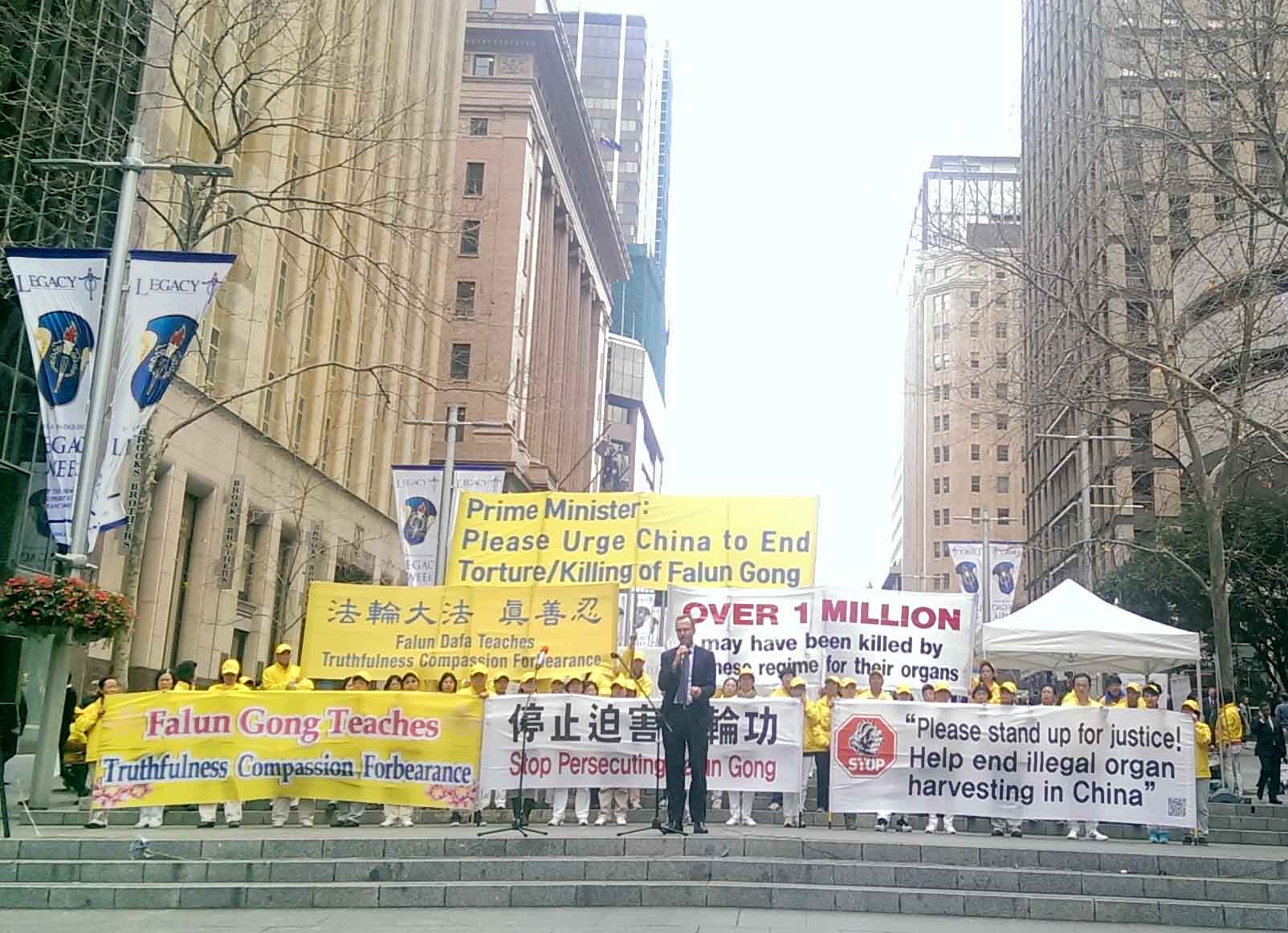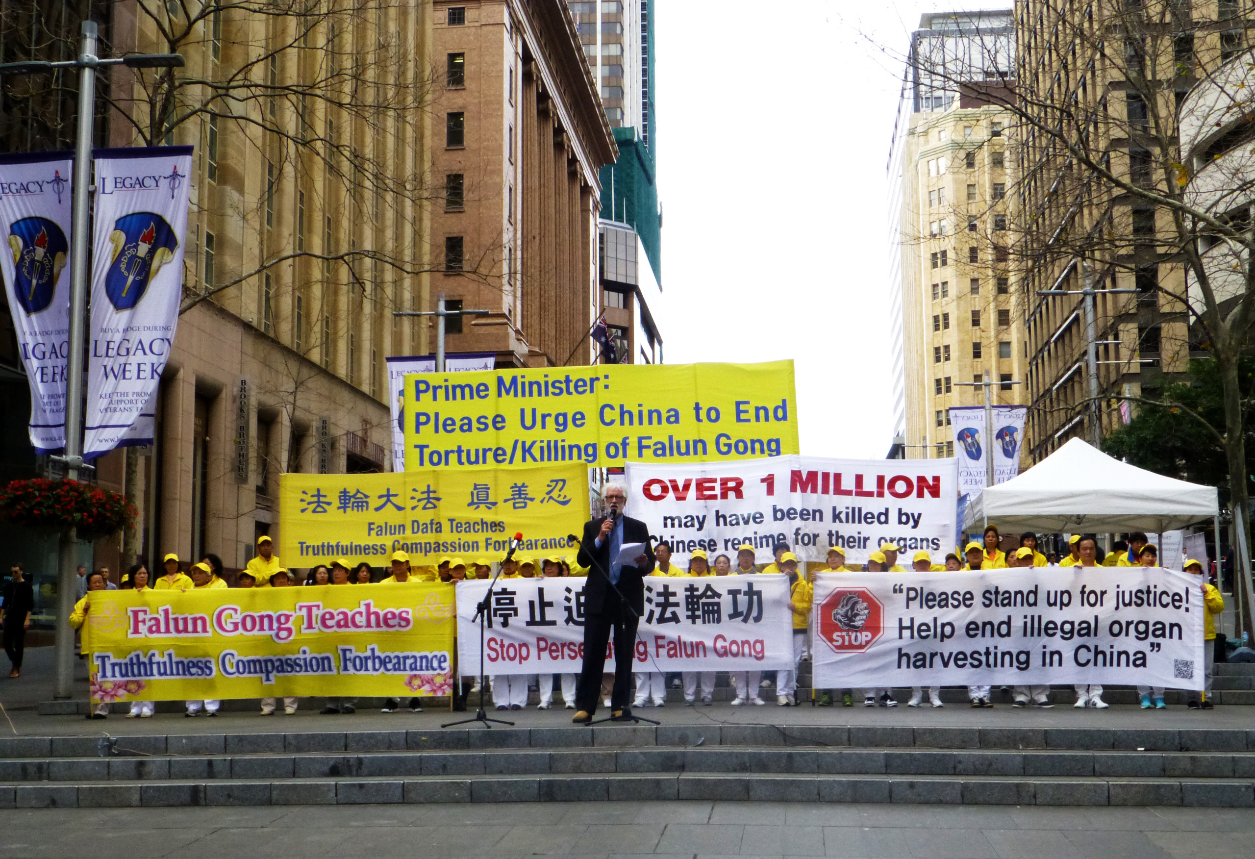 新州上议员大卫•舒布瑞杰(David Shoebridge)在集会上发言中呼吁澳洲总理这个周末前往中国参加二十国峰会时,直接向中国领导层提出中共严重侵犯人权的问题,“其中最骇人听闻的是每年有数以十万计的移植案例在中国的军队医院和地方医院发生,而其器官来源多来自于良心犯。”