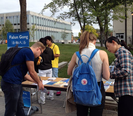 在“曼大”新生入学周活动上,一千四百五十人签名支持法轮功,其中部分香港学生、在加拿大出生的中国学生及一些“曼大”的教职人员,他们中很多人都曾听说过活摘器官,主动签名支持法轮功学员反迫害。此外,活动中还有上百名来自中国大陆的学生声明退出了曾经加入过的党团队组织,并拿了很多法轮功真相资料及翻墙卡片,希望让国内的亲朋好友也了解法轮功真相并办理三退。