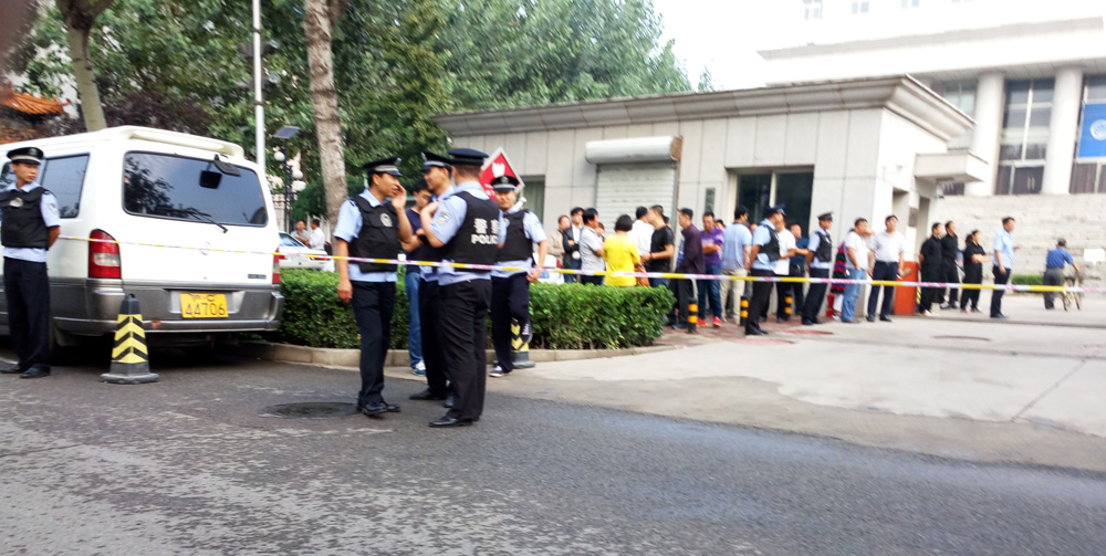 图:庭审前,廊坊广阳区法院到处都是警察和便衣,监视周围的百姓。