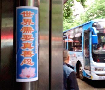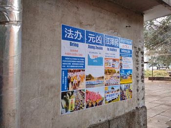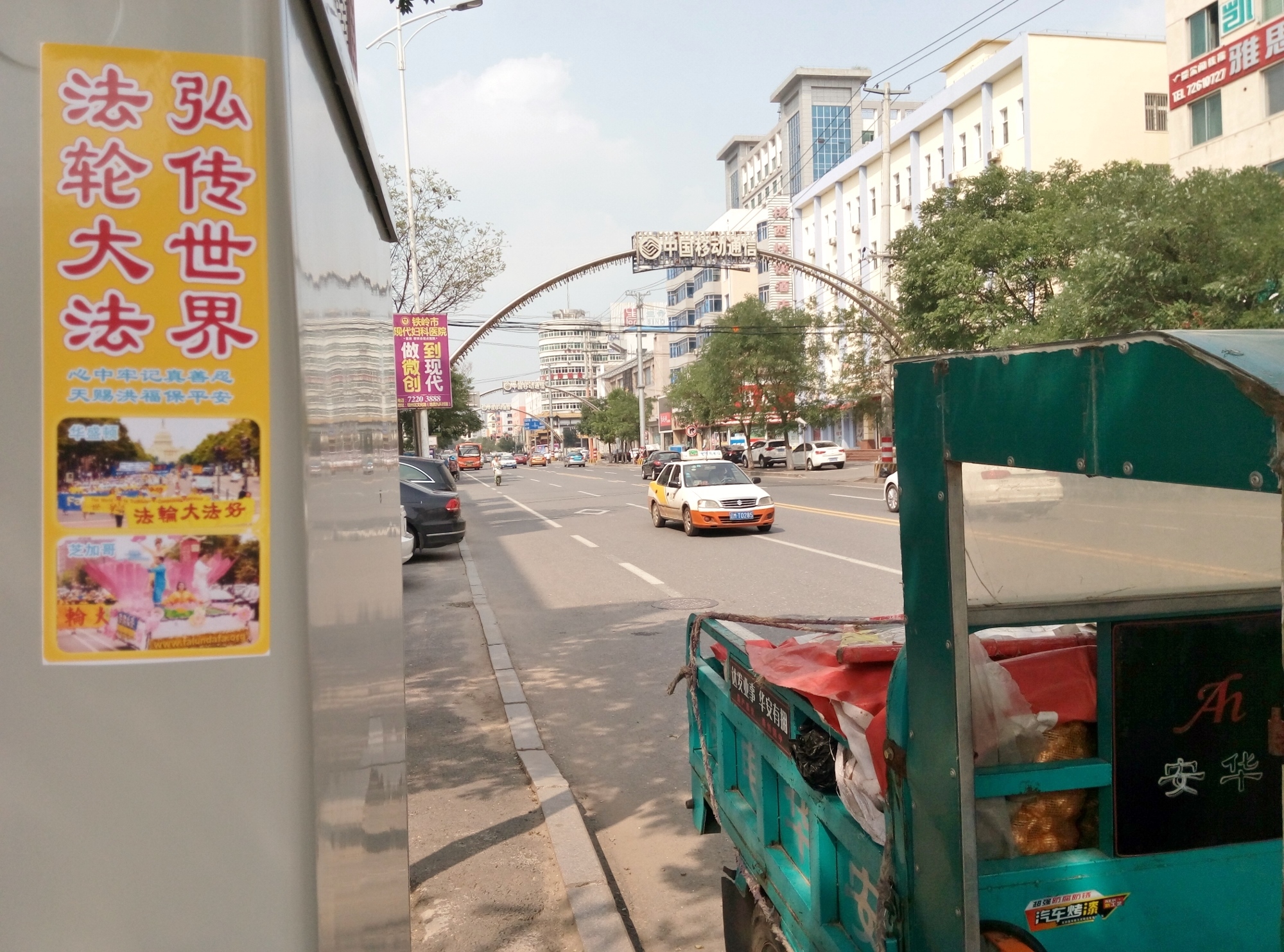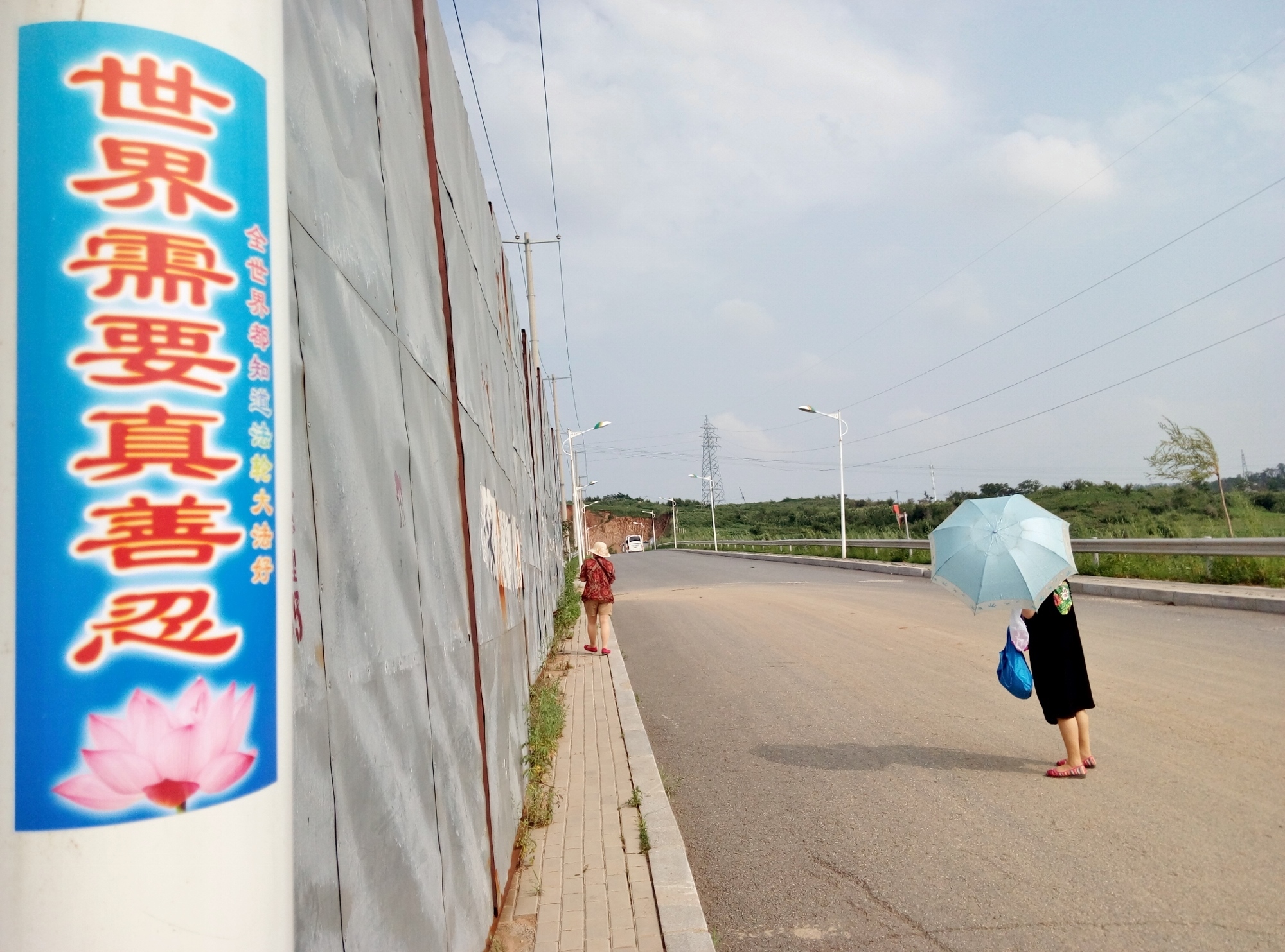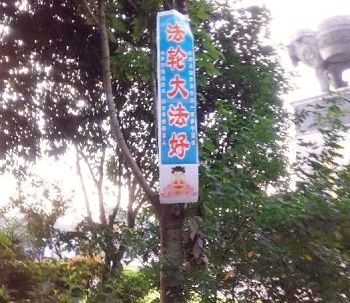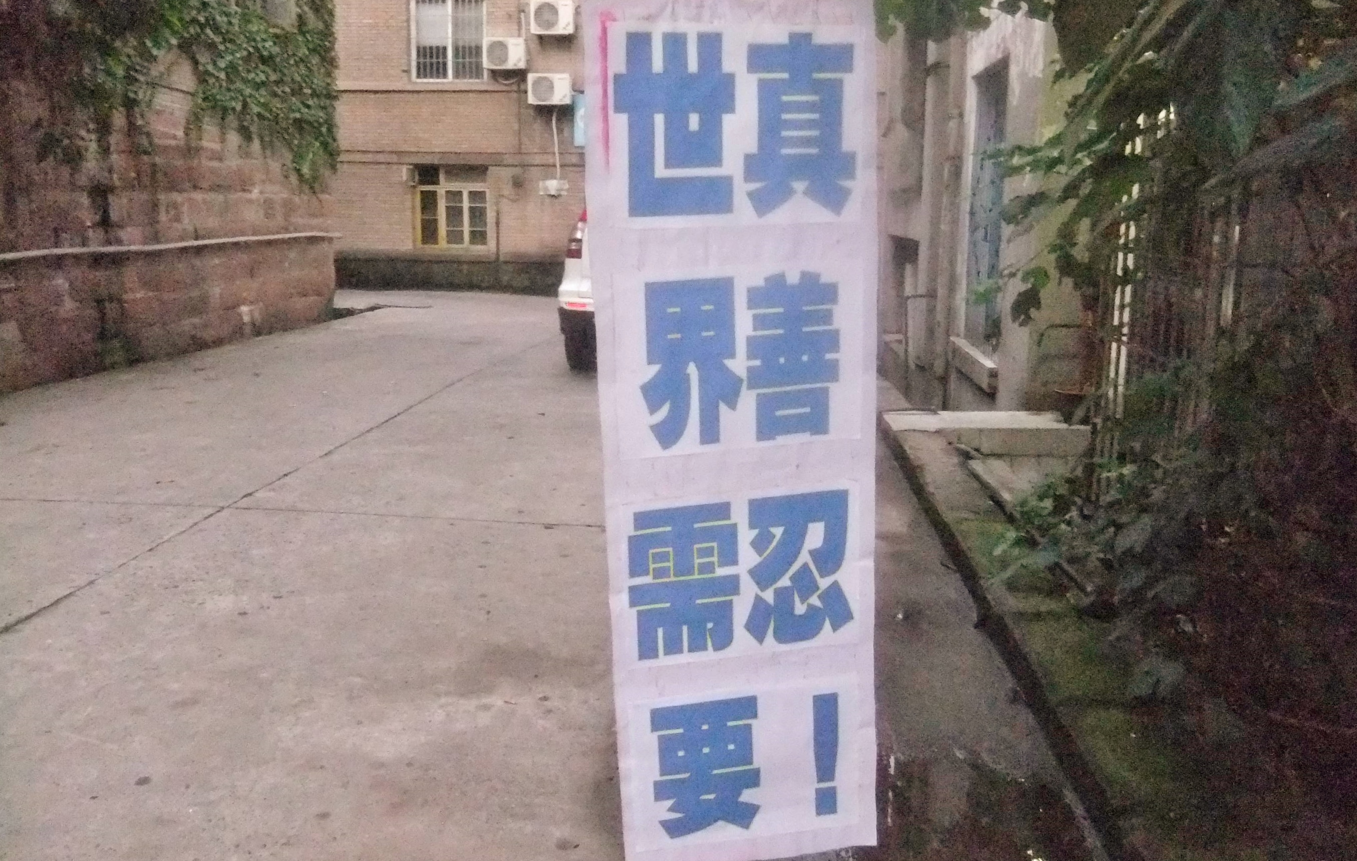 湖北武汉法轮功学员悬挂条幅和张贴标语传播真相
