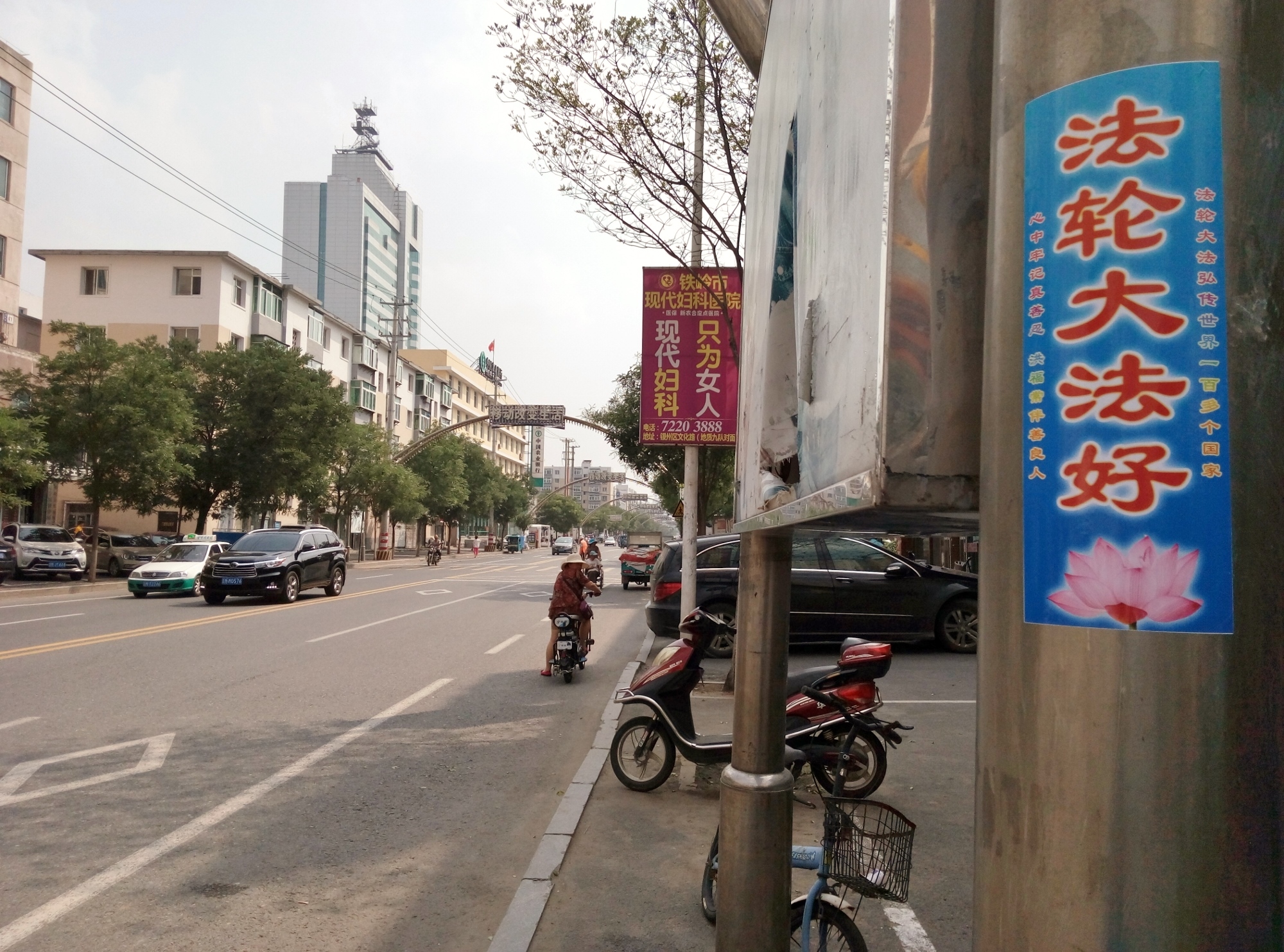 在铁岭,每天出门就能看到“法轮大法好”的标语。道路的两边、公交站点、小区内等随处可见,“法轮大法好”、“法轮大法弘传世界”、“真善忍好”、“停止迫害法轮功 把江泽民送上法庭”、“20万人在中国控告江泽民”、“天灭中共“三退”保平安”、“世界需要真善忍”等信息在铁岭广泛传播。