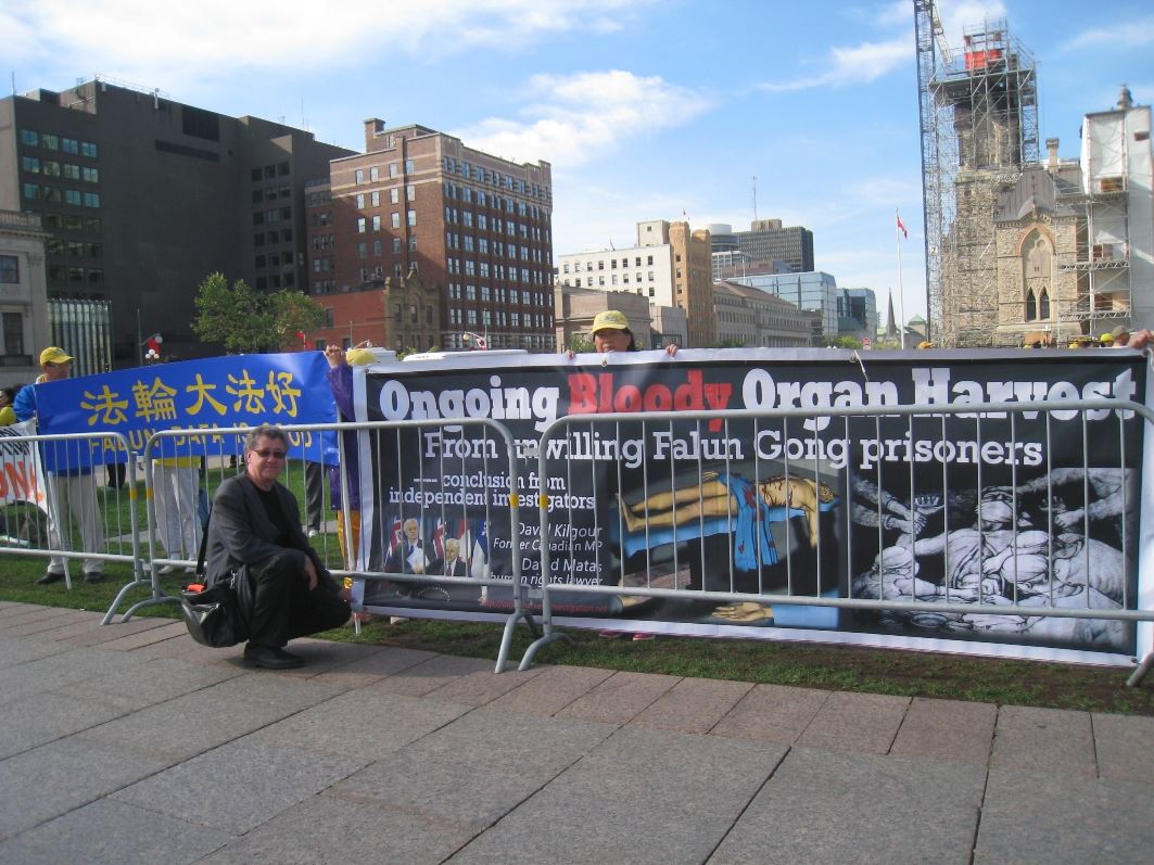 国家级组织机构研究摄影师(researcher photographer)Paul Lauzon先生在现场对法轮功学员说:“我支持法轮功学员的反迫害和全球诉江活动。”他说:“我觉得加拿大政府应该给中国政府施以更大的压力,因为中国政府不愿意停止迫害法轮功,尤其他们不愿意停止活摘法轮功学员器官去牟取暴利的行为。中国的共产主义制度害怕人们聚在一起反对他们,中共不敢面对来自其他团体的挑战。人们在中国没有自由,所以这是人们来到加拿大的理由。我支持你们的反迫害和大卫·乔高的反活摘宣传活动。中国政府应该拥护法轮功,而不是反对法轮功。”