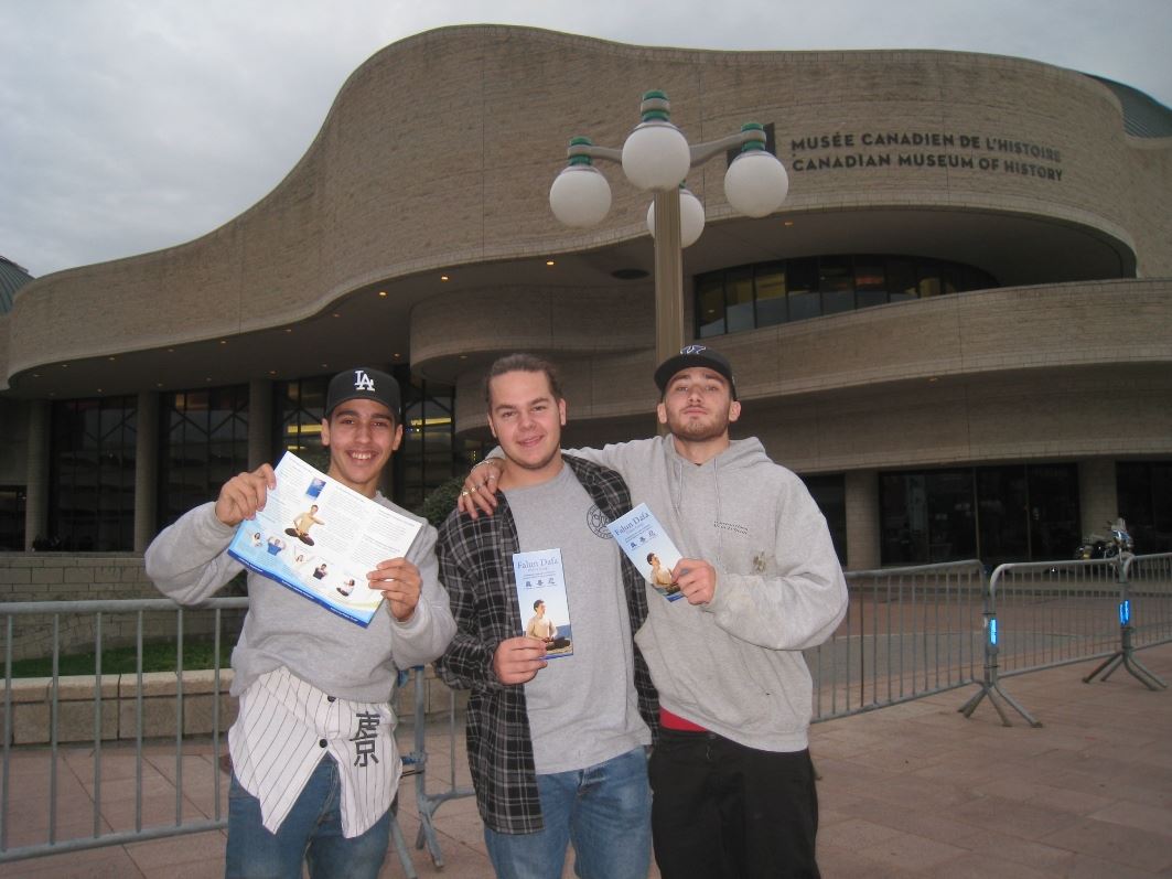 Omrr Livoie来自于魁北克省,是一所法语大学预科学校的学生,今天和同学Vincent及Alexander一起来博物馆来游玩,看到博物馆前有很多法轮功学员举着横幅。Omrr听完法轮功学员讲解法轮功及被迫害真相之后,就用法语翻译给两位同学。Omrr和两位同学都表示,法轮功学员有自由在世界上任何一个地方修炼法轮功。