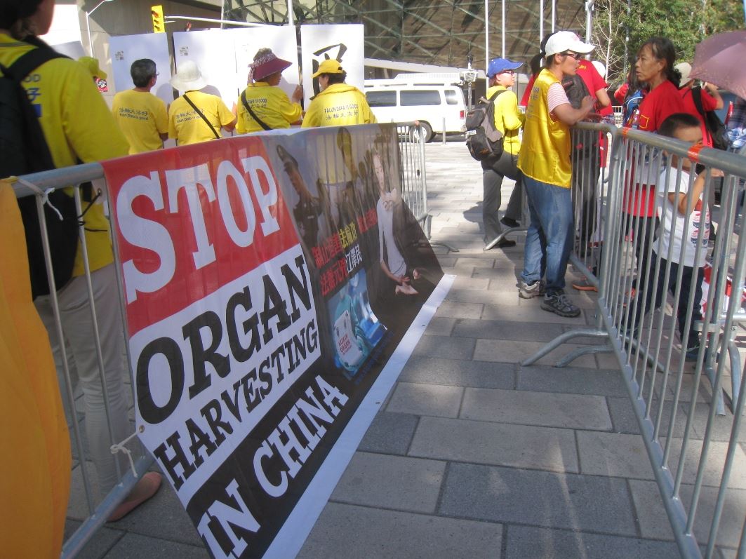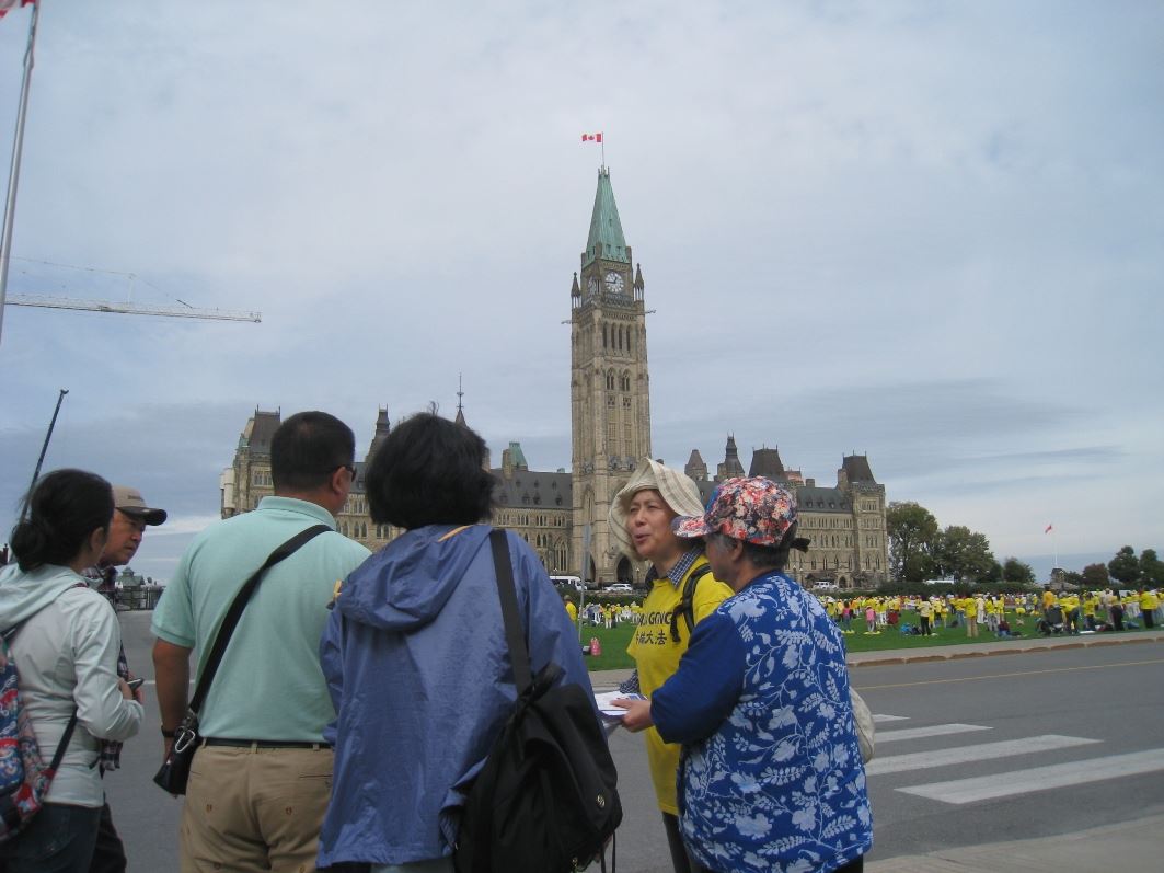 由华侨、华商和中国留学生组成的中方欢迎队伍与法轮功学员的欢迎队伍分列两处,双方既有交流又用各自的方式表达对中国总理的问候和诉求。中方欢迎队伍中的华人明白真相后,纷纷三退;为中方官员服务的华人明白真相后,爽快地同意三退;更有明白真相的参加国宴的在加华商,欣然同意退出曾经入过的党团队。