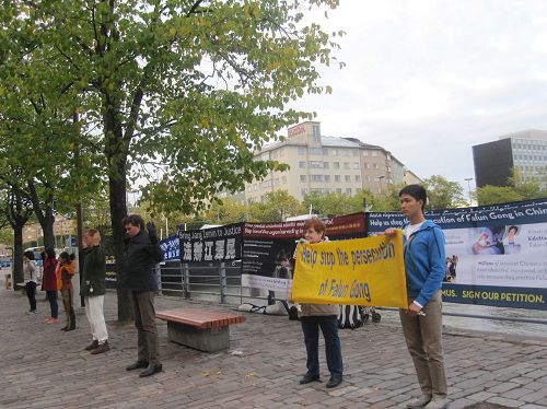从大陆到芬兰旅游的王先生夫妇了解到上百万法轮功学员被中共活摘器官的真相,王先生沉思片刻后说:我太了解中共,你们(指法轮功学员)做得很好,坚持就会成功。