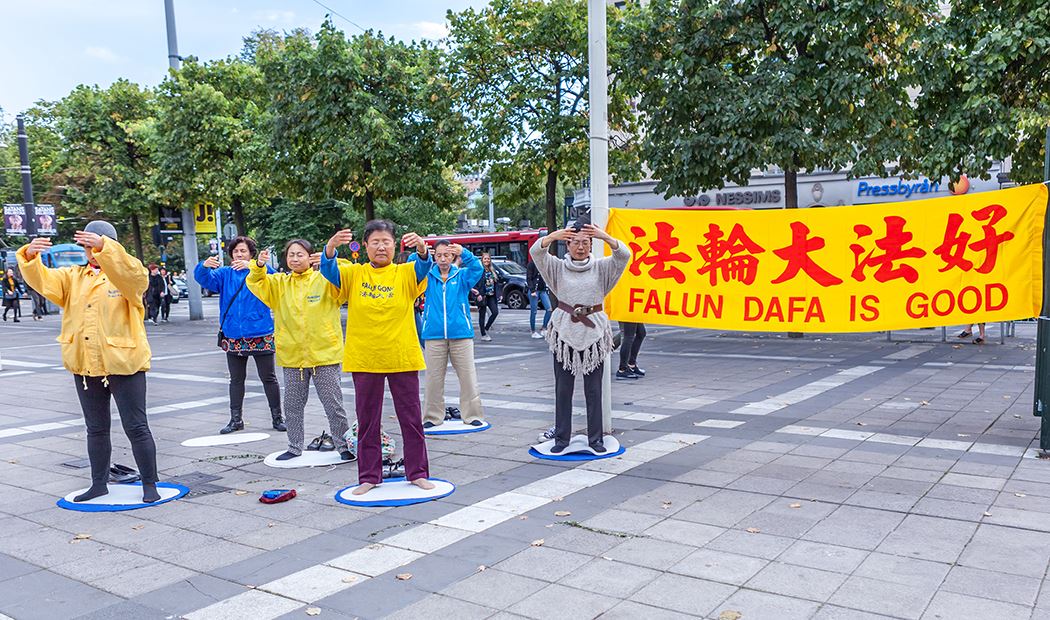 【明慧网二零一六年九月二十六日】二零一六年九月二十四日下午,法轮功学员在瑞典斯德哥尔摩北城广场(Normalmstorget)举办反迫害征签活动,学员用模拟演示活摘器官、展板、功法演示等方式,向当地民众揭露中共十七年来对法轮功的残酷迫害,尤其是活摘法轮功学员器官的罪行,并征集“制止活摘,制止迫害”的签名。