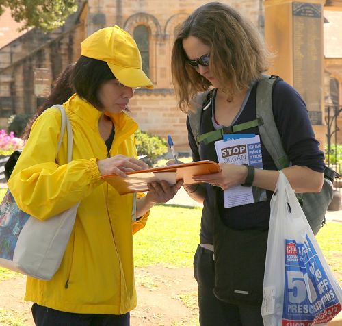 她说:“我觉得法轮功学员做得很好,他们努力在让人们了解迫害和活摘的事实。但是还是有很多的澳洲人还不知道。当我与我的兄弟讲起对法轮功的迫害和活摘之事时,他表示他一点都不知道。所以,对我来说,就是尽自己所能,将这些事实告诉我的家人和朋友,让更多的人知道真相,因为受害者自己没有机会讲出这些。当社会普遍了解真相,并予以关注时,事情就会发生变化。”