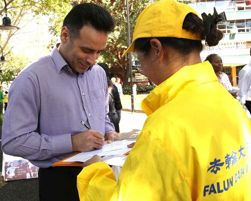 前帕拉玛塔市工党议员、律师詹姆斯·肖(James Shaw)说:“我今天来到这里是想说,虽然帕拉玛塔市议会被政府取消了,但是我支持法轮功的声音仍在这里。由于与中国的经济关系,澳洲政府在这件事情上保持沉默。我们必须向政府说明‘面对活摘器官这样的事情不能保持沉默,全世界所有的国家都应该尊重信仰自由、言论自由,我们应该抛开经济关系,坚定的站出来维护这些价值。’”
