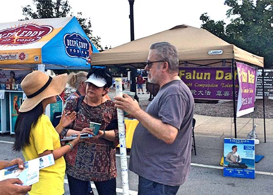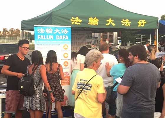 一位来自大陆的华人母亲带儿子来到展位前,听了学员讲真相后,深有感触地说:我在国内就听说了法轮功受迫害。中共邪恶至极,我们人人都要讨伐它。