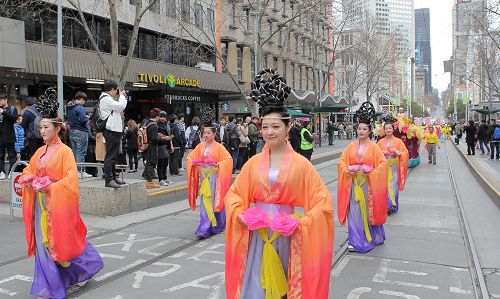![]() 图1-8:法轮功学员在墨尔本商务中心举行盛大游行 |