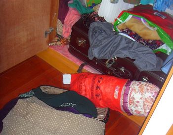 ![]() 图1~4:二零一五年六月,沈阳市集贤派出所警察将顾英华女士的家翻得一片狼藉,抢走顾英华的私人财物:人民币一千元左右、电脑、打印机和法轮大法书籍。 |