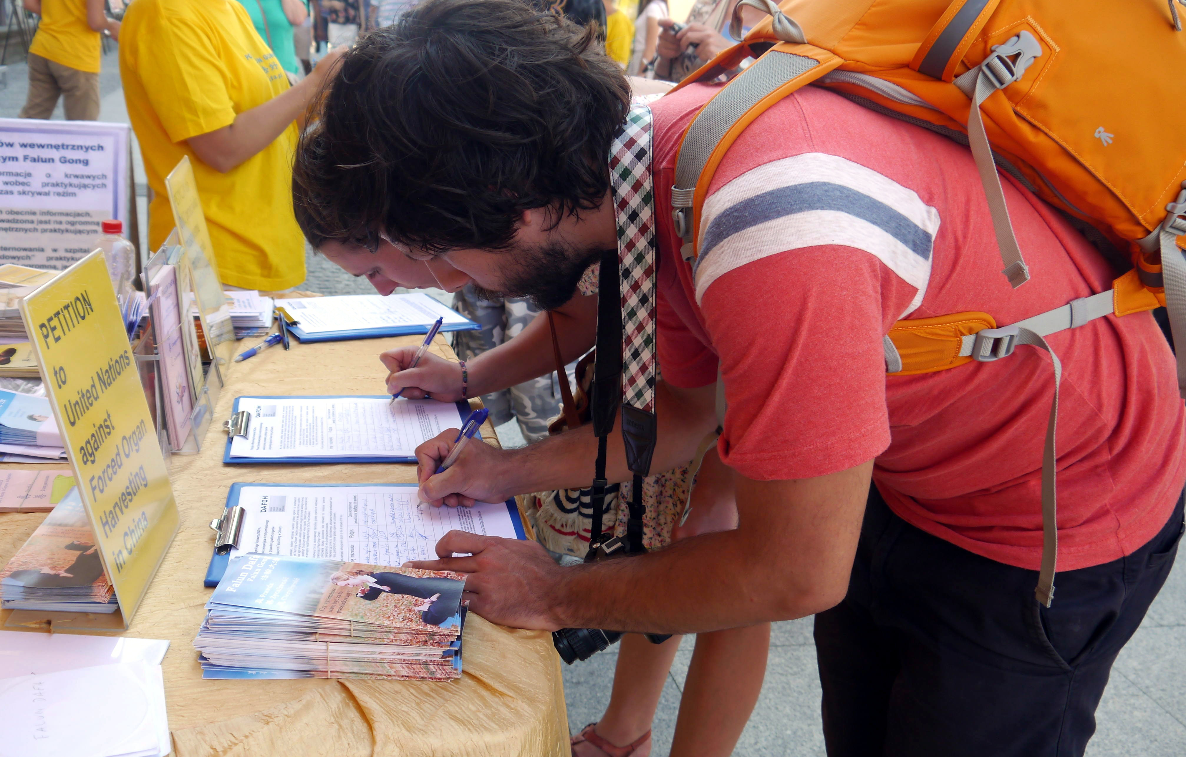 Monika是波兰国际大赦的一员,在签名后,她向法轮功学员要了更多的签名表及不同语言的真相资料,想帮助那些遭受迫害的法轮功学员。她认为:“每个人都有他自己信仰的自由,没有人可以剥夺这一点。”