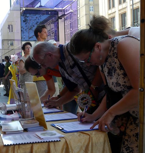 图3-6:路人纷纷签名要求制止中共活摘法轮功学员器官