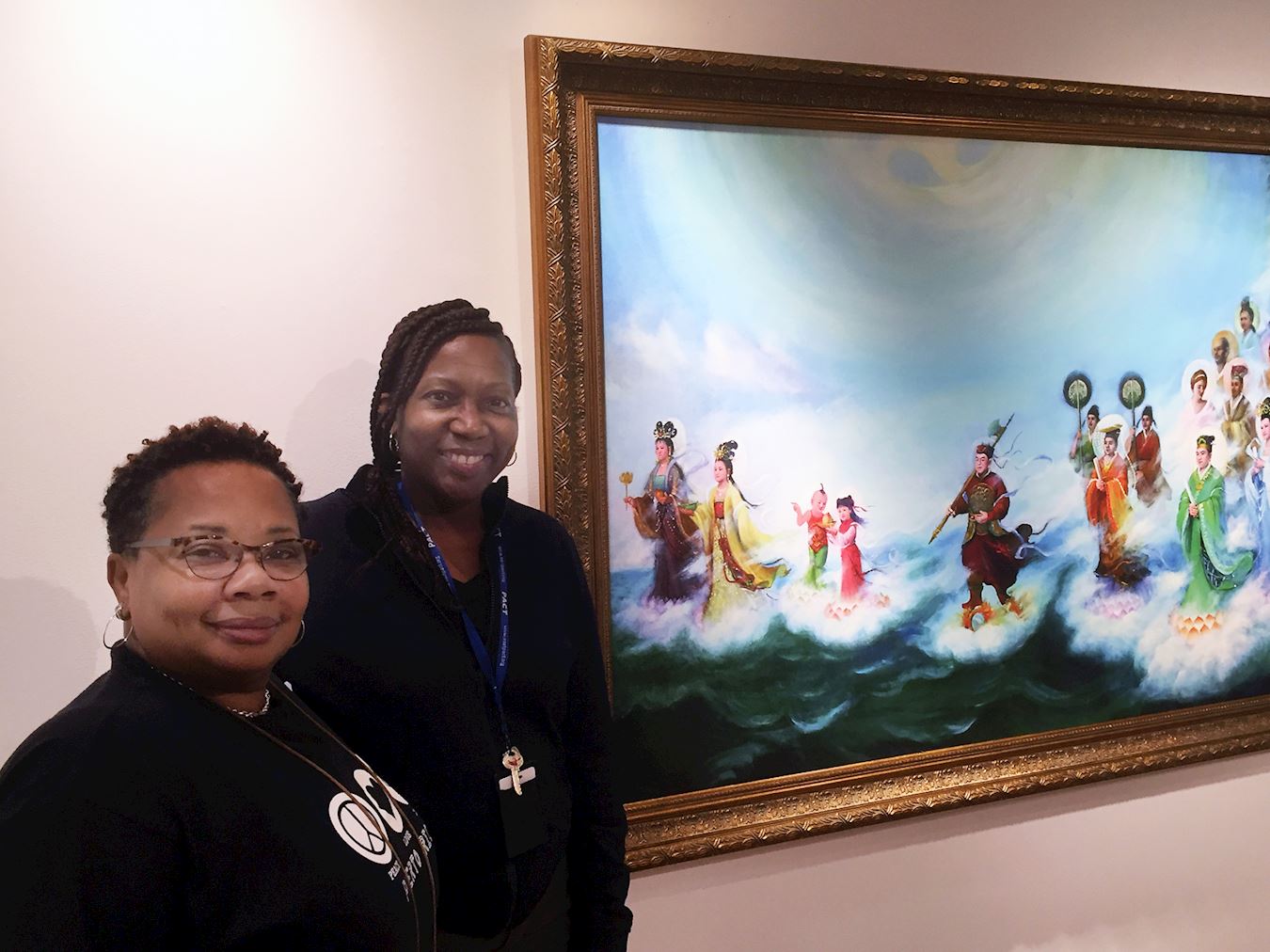 马丁路德金博士(Dr. Martin Luther King, Jr.)一生为争取人权平等,主张以非暴力的公民抗命方法争取非裔美国人的基本权利,因此荣获1964诺贝尔和平奖。所以当学员向中心介绍真善忍画展时,中心文化主任及所有成员都表示,感受到真善忍画展展现的坚忍正义,尤其见到《纯真的呼唤》作品时,罗根主任(Lyn Logan Grime)说她的心融化在画中小女孩善良的眼神里。没过多久马丁路德文化中心就通知学员,她们欢迎真善忍画展,成为中心重新装潢后的皮耶画廊的首次展览。