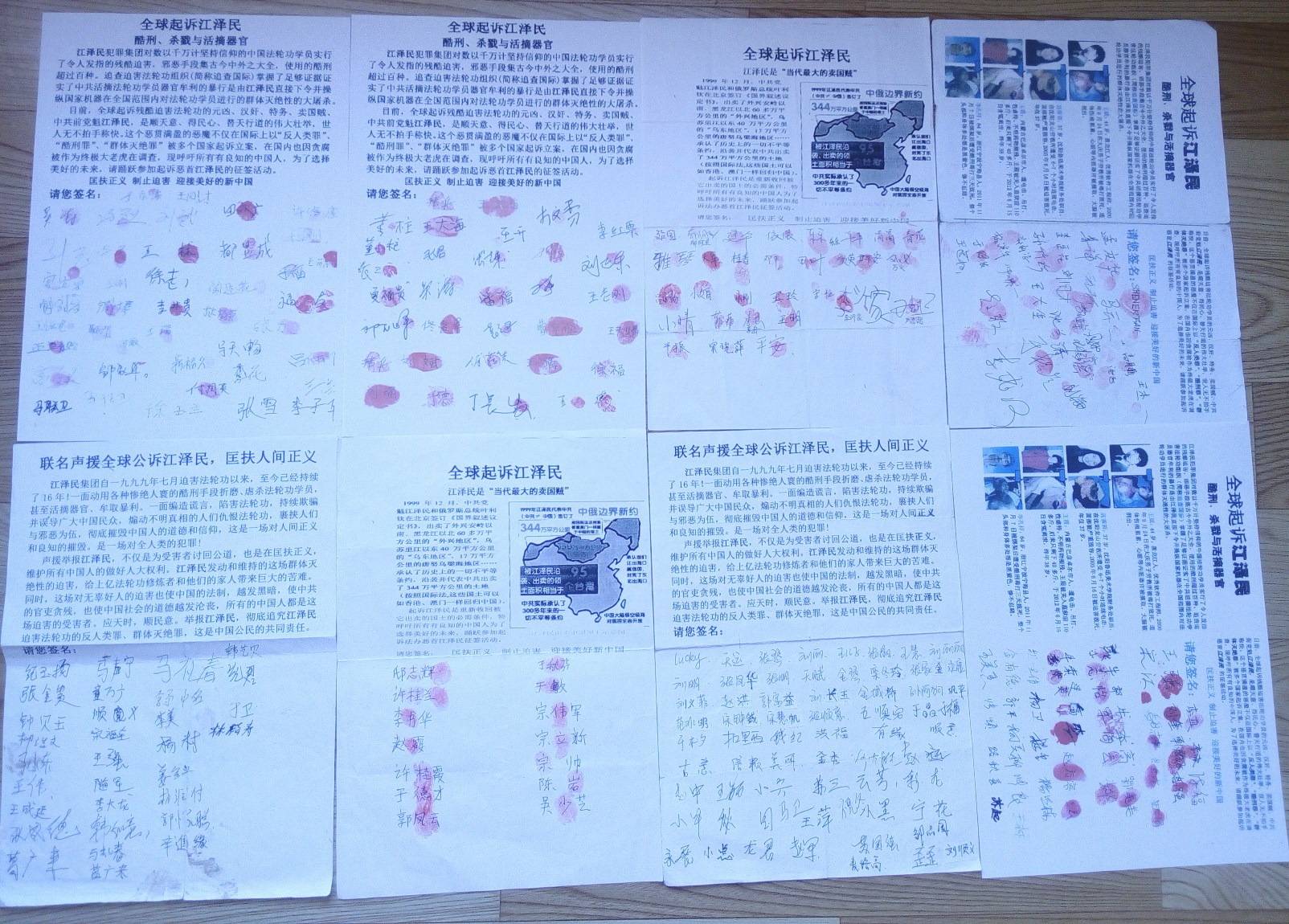有一个80多岁的老大爷说:江泽民还没有死啊,他太坏了,他害了多少人。签完字后在按手印时,重重地按了一下手印,说了声“该死的江泽民”。