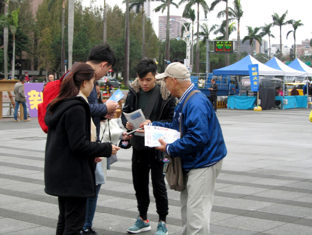 图1-2:大台北地区法轮功学员于二零一七年一月十五日在“自由广场”集体大炼功、传播真相。