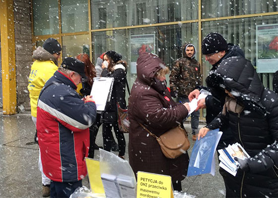 波兰法轮功学员在慈善节期间来到罗兹市,在热闹的大超市门前及市中心步行街揭露中共对法轮功学员的残酷迫害。