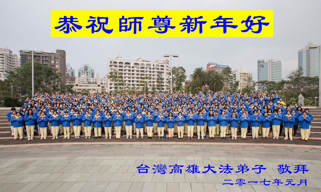 【明慧网二零一七年一月十八日】(明慧记者孙柏、苏容台湾高雄采访报导)中国新年将要到来,台湾高雄部份法轮功学员提前向法轮功创始人李洪志先生拜年,五百多位学员于二零一七年一月十五日清晨齐聚在高雄文化中心前庭广场集体炼功后,双手合十齐声“恭祝师尊新年快乐”,以表达对李洪志先生的崇敬与感恩。
