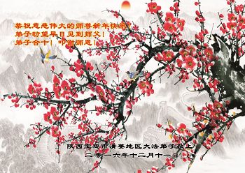 在2017年元旦到来之际,海内外法轮大法弟子精心制作贺卡图片,向师尊表达深深感恩,敬贺师尊元旦快乐!