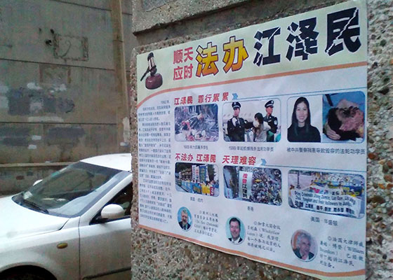 辽宁省沈阳市居民区的海报传播法轮功真相