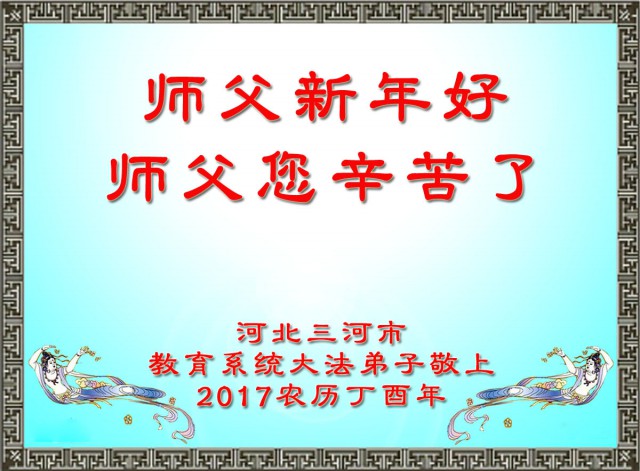 <英文版: http://en.minghui.org/html/articles/2017/1/3/161000.html>海外各地大法弟子恭祝师尊新年好