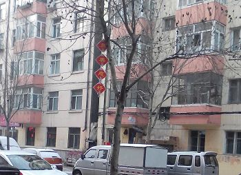 大陆各地树挂、条幅、海报传递新年祝福和真相